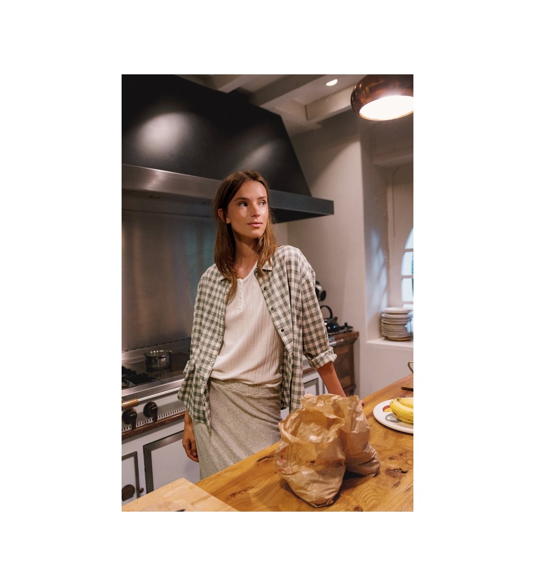Camisa de corte clásico con hombro ligeramente caído, tejido con algodón en cuadro vichy y tinte en hilo, un must de esta temporada.