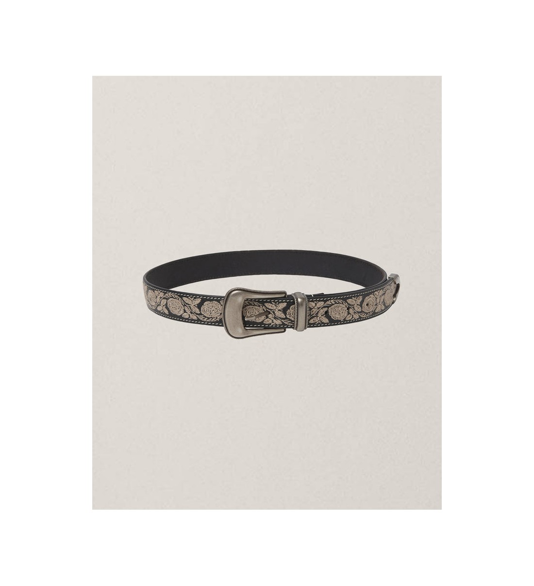 Guadalupe is designed in rich jacquard with an intricate floral motif in a brown leather base. Its brushed silver buckle adds a rustic touch, creating a perfect balance between artisanal detail and everyday versatility. A statement belt that elevates any outfit with subtle sophistication.