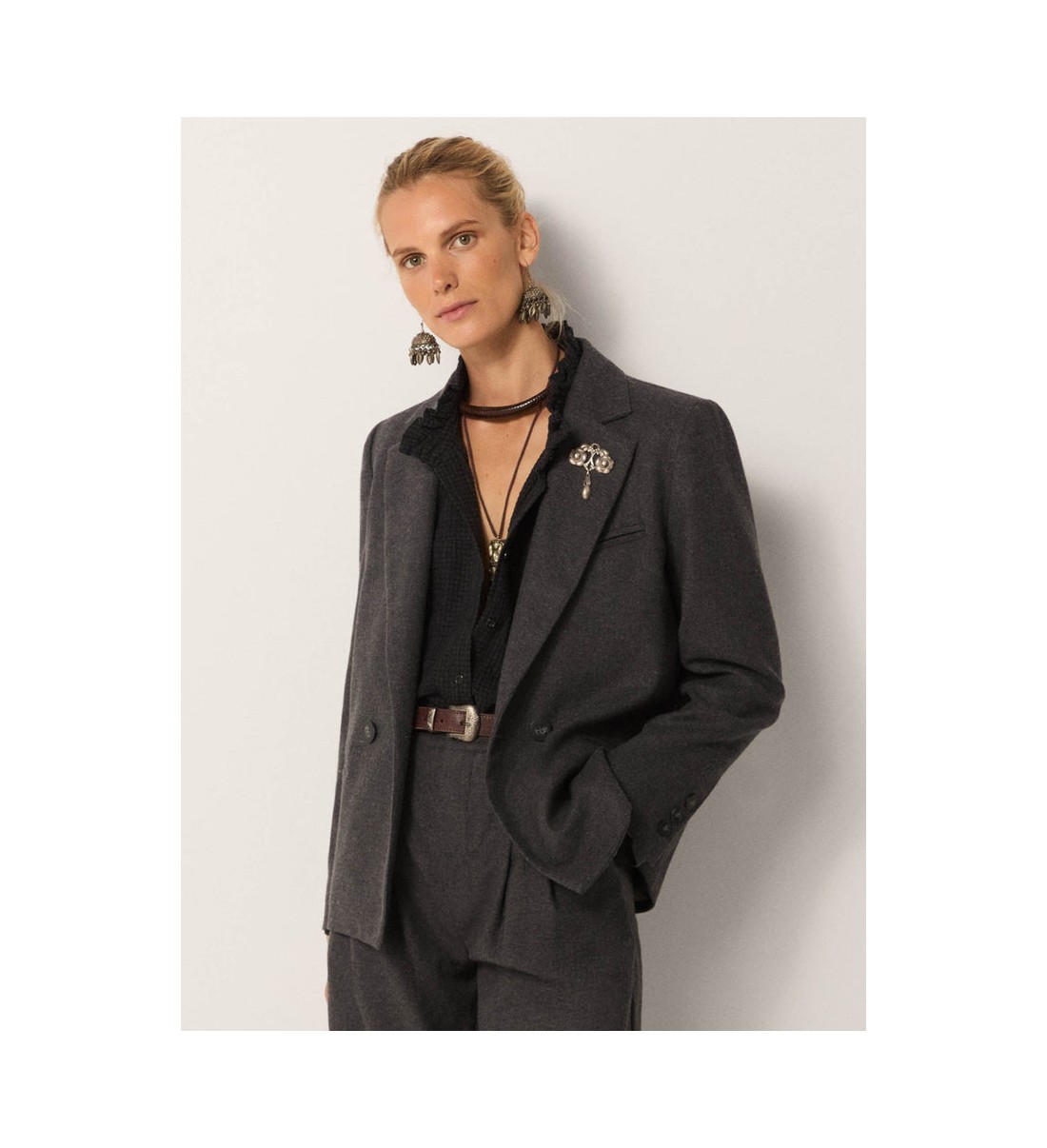 Confeccionada en una mezcla de algodón estructurada, la Blazer Anna se presenta en un negro ónix intenso. Sus líneas limpias y su corte impecable le otorgan presencia, mientras que la tela la mantiene sencilla y fácil de llevar.