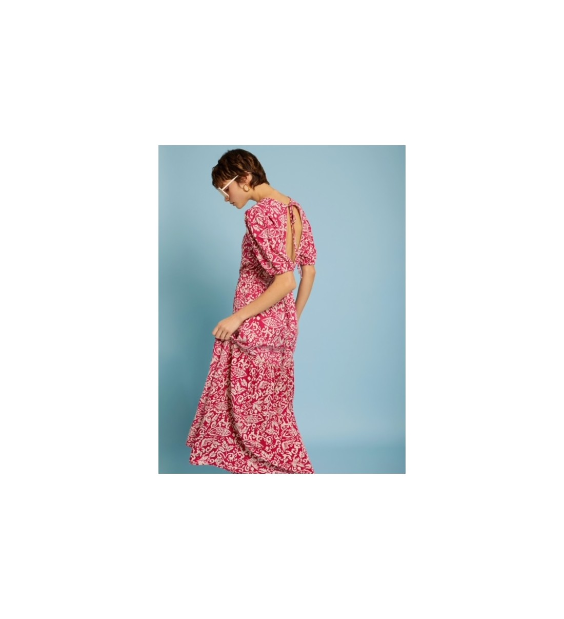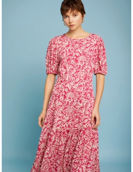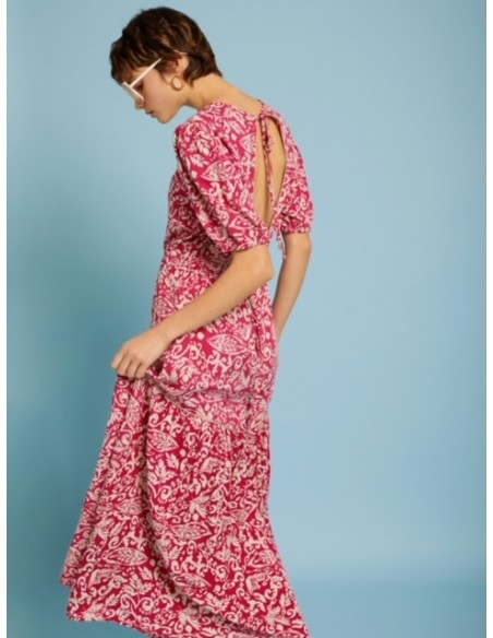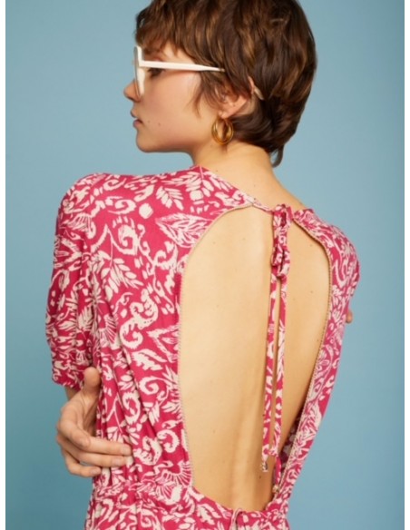 Vestido viscosa estampado floraL en manga corta con escote espalda.