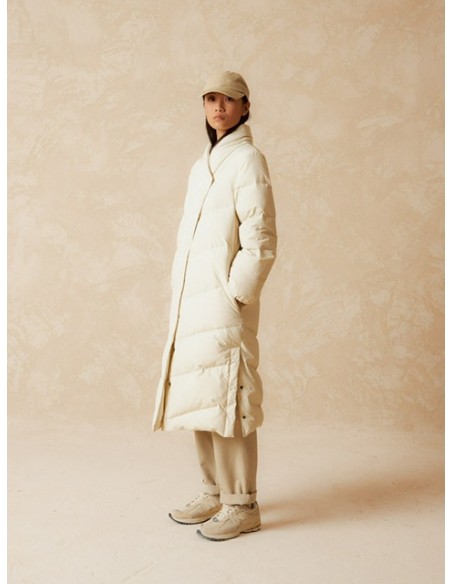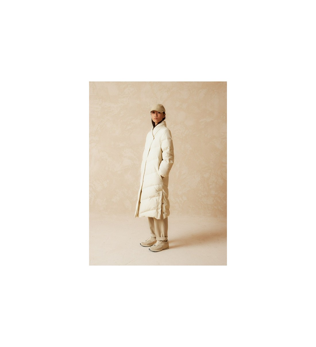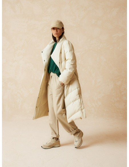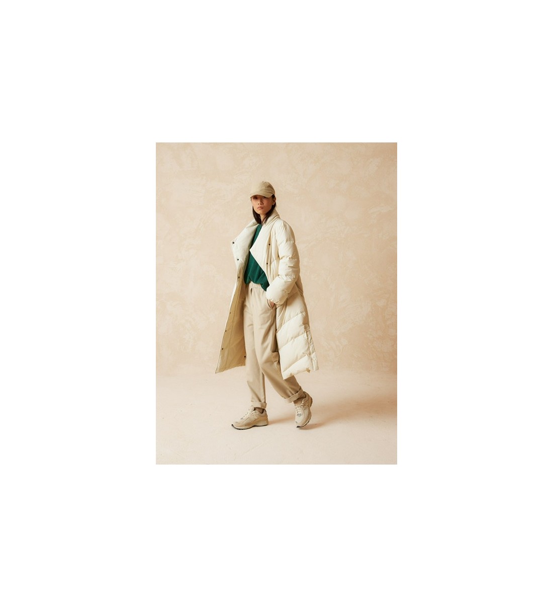 ¿Quieres estar abrigada pero con estilo? Tenemos el plumífero perfecto para ti. Con su cuello envolvente que le da un toque japonés único, este plumífero está diseñado para llevarlo holgado. Además, las aberturas laterales con cierre de broches lo hacen aún más cómodo