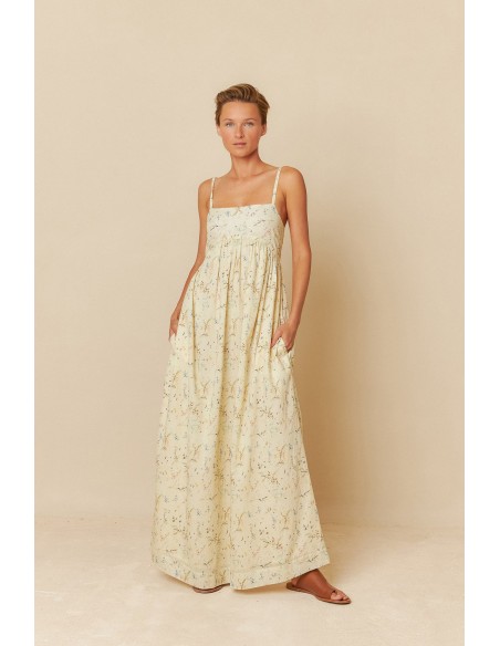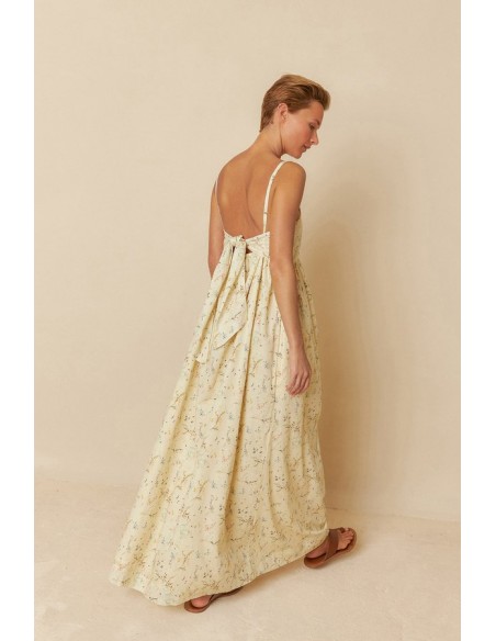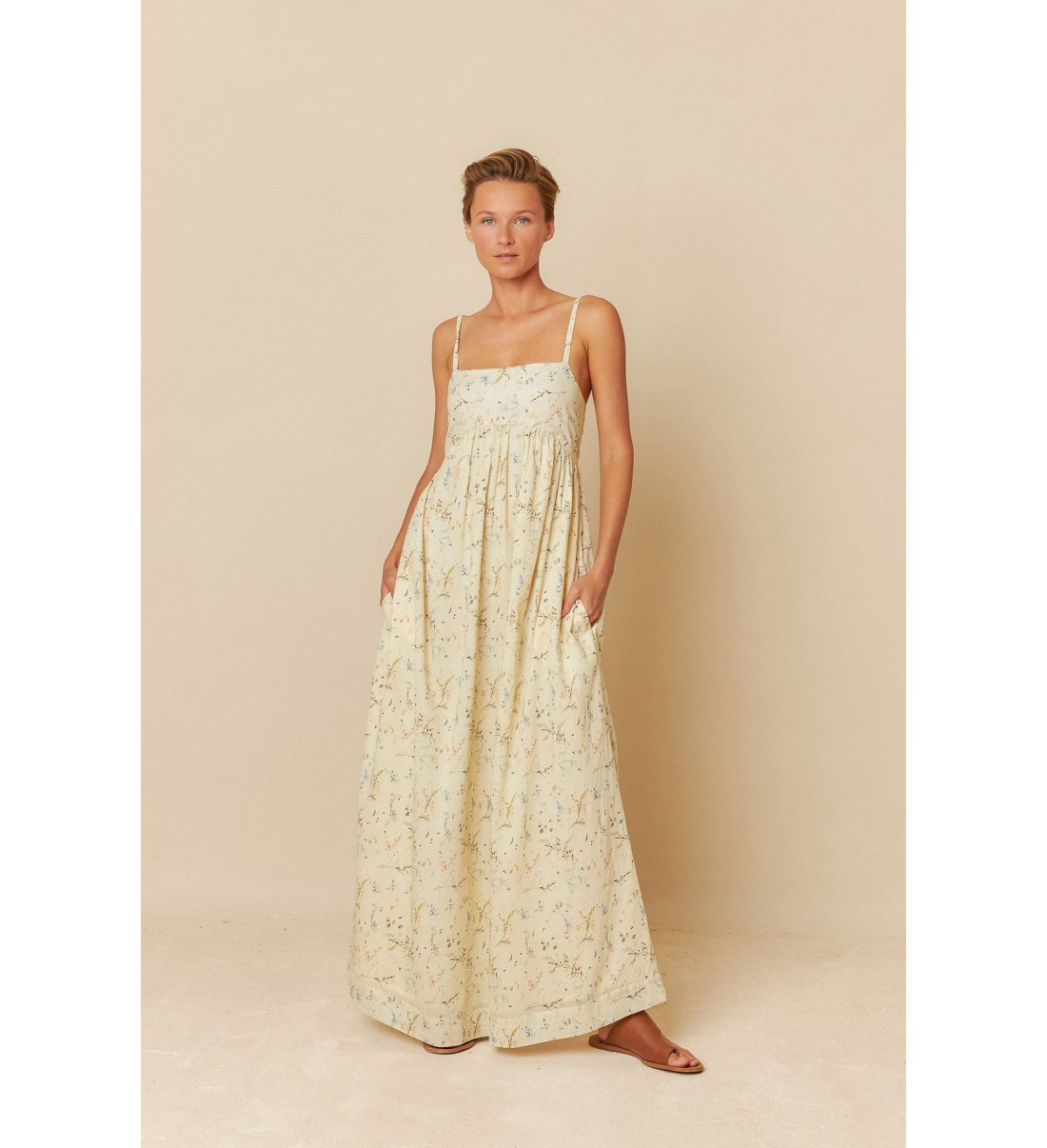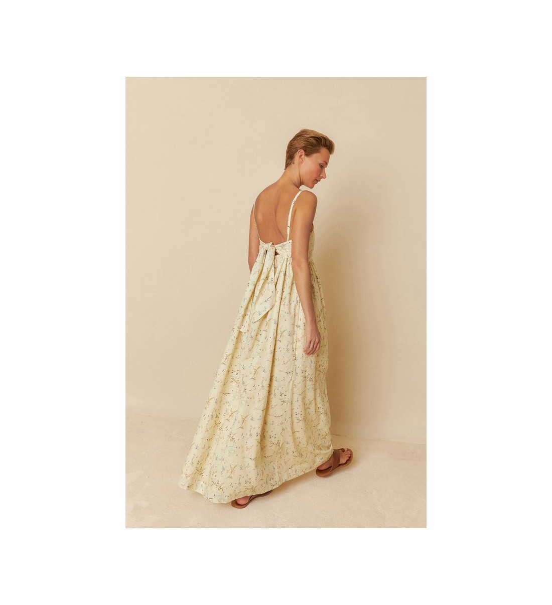 Siente la ligereza de este vestido voile de algodón, con corte imperio y lazada en la espalda para un toque romántico. La parte trasera engomada y los bolsillos ocultos lo hacen práctico y elegante. Su estampado floral, inspirado en el papel de flores hecho a mano, refleja el ADN INDI&COLD. Incluye forro para mayor comodidad.