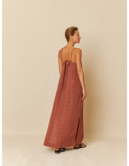 Nos encantan los vestido fluídos, y mas si son de algodón y lino. Tiene detalle fruncido en el pecho y tirantes. Lleva bolsillos ocultos y tiene aberturas en los laterales que le dan mucho movimiento.