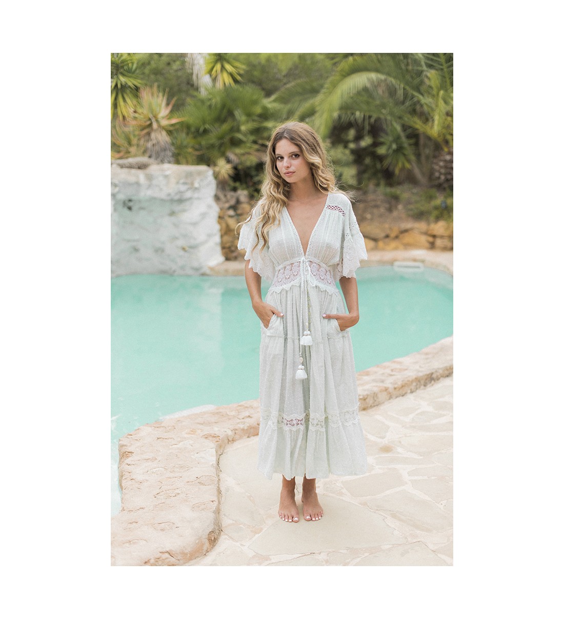 Vestido boho largo con escote.